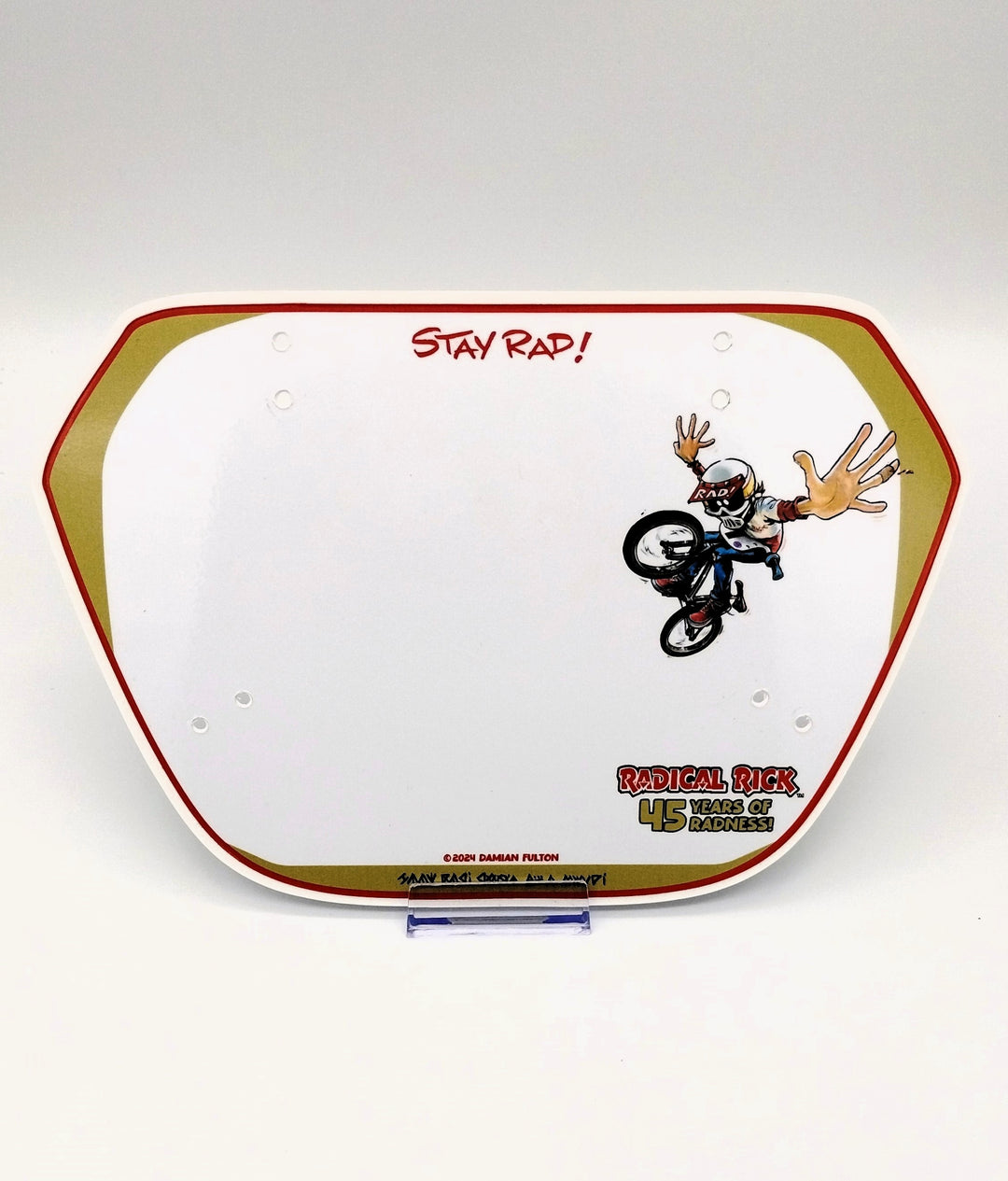 Radical Rick is the comic offspring of artist Damian Fulton and the star of the long-running Radical Rick comic strip from BMX Plus! magazine. Along with his supporting cast of MX Mug and Skuzzer Switchblade, the BMX adventures of Rick live on for all of BMX eternity in the pads, plates and artwork of Damian.